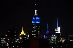 Das Empire State Building ist ein Wolkenkratzer im Stadtbezirk (Borough) Manhattan in New York City, USA. Mit einer strukturellen Höhe von 381 Metern – bis zur Antennenspitze rund 443 Meter – war das von 1930 bis 1931 in relativ kurzer Bauzeit errichtete Gebäude nicht nur das höchste Gebäude New Yorks, sondern bis 1972 auch höchstes Gebäude der Welt. Nach der Zerstörung des früheren World Trade Center bei den Anschlägen des 11. September 2001 war es bis zum Richtfest des One World Trade Center 2013 im neuen World Trade Center wieder das höchste Bauwerk der Stadt.