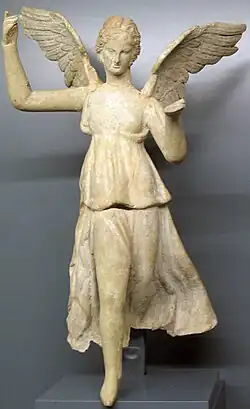 In der griechischen Mythologie treten die Daimones als persönliche Schutzgeister und Vermittler zwischen Göttern und Menschen auf. Laut Hesiod gingen sie aus den Seelen der Menschen des Goldenen Zeitalters hervor. Dem griechischen Daimon entspricht der römische Genius, der auch geflügelt dargestellt werden kann. Aber auch die Götter selbst greifen in das Leben der Menschen ein oder senden den Götterboten Hermes-Mercurius, der als Attribute geflügelte Schuhe und Hut trägt. Mit der Auseinandersetzung Griechenlands mit orientalischer, vor allem persischer Kultur ging die Vorstellung einer mit Vogelschwingen geflügelten Siegesgöttin Nike in den Olymp ein. Als Victoria gelangte sie auch in den römischen Kulturkreis und wurde in späterer Zeit zum Siegesengel mit Siegeskranz und Palmenzweig stilisiert.
