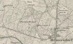 - ↑ Topographische Uebersicht der im Departement des Königlichen Kammergerichts gelegenen Ortschaften. Aus amtlichen Quellen zusammengestellt. Verlag der Deckerschen Geheimen Ober-Hofbuchdruckerei, Berlin, 1854 Online bei Google Books, S. 31.