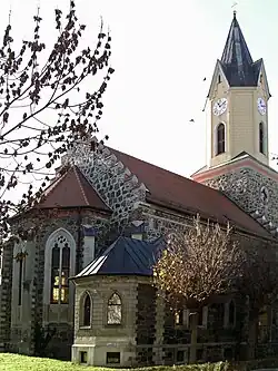 Im Zweiten Weltkrieg wurden Bahnanlagen und Ort stark bombardiert. Nachdem das Baurecht jahrzehntelang aus ideologischen Gründen verweigert wurde, entstand die römisch-katholische St.-Gertrud-Kirche in den 1980er-Jahren aus einer alten Scheune bzw. einem Stall. Der Glockenturm durfte den Dachfirst nicht überragen, wurde aber eigenmächtig mehrere Meter höher ausgeführt.