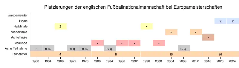 Bei der EM konnte England zwar wieder das Auftaktspiel nicht gewinnen, aber das 1:1 gegen Frankreich und Siege gegen Schweden und Co-Gastgeber Ukraine brachten den Gruppensieg. Im Viertelfinale war die englische Mannschaft, die mit einer ähnlichen Taktik wie der FC Chelsea im Champions-League-Finale spielte, der italienischen Mannschaft zwar deutlich unterlegen, erreichte aber dennoch das Elfmeterschießen, in dem sie erneut verlor.