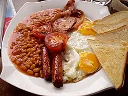 Das typische englische Frühstück wird, da die Zubereitung relativ aufwendig ist, von den meisten Briten nicht regelmäßig zu Hause verzehrt. Dagegen findet man das full English breakfast in vielen Hotels und Pensionen sowie in zahlreichen kleinen Cafés und Imbissen. Fester Bestandteil dieser Mahlzeit ist Toast mit gesalzener Butter (Margarine gilt bei der traditionellen Zubereitung als „barbarisch“), während die übrigen Bestandteile variabel sind: