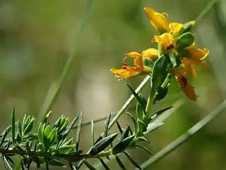 - Genista anglica subsp. ancistrocarpa (Spach) Maire (Syn.: Genista ancistrocarpa Spach): Sie kommt von Marokko bis Spanien und Portugal vor. Die Chromosomenzahl beträgt 2n = 48. Sie steigt nur bis zu 20 Meter Meereshöhe auf.[5]
