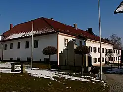 An der Südseite der Gasse befinden sich die für ein Pfarrdorf charakteristischen Bauten: Das Schulhaus des späten 19. Jahrhunderts und das Krameranwesen, ein altes Flachsatteldachhaus. Die Nordseite wird vom Wohntrakt des ehemaligen Gutshofes bestimmt, der im 19. Jahrhundert zum Brauereigasthof ausgebaut worden war. Ein kleiner zum Gutshof gehöriger Park im englischen Stil liegt jenseits der Bundesstraße, ist aber durch seinen Eingang genau auf die Gasse bezogen.