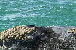 - Seepocken; die sessilen Rankenfußkrebse leben als Filtrierer auf Walen oder Meeresschildkröten, ohne ihrer Wirtstiere zu schädigen. Für kleinere Tiere, einschließlich Meeresschnecken wie die Große Strandschnecke ist ein starker Bewuchs mit Seepocken von Nachteil, da die Beweglichkeit der Schnecken durch das zusätzliche Gewicht erheblich beeinträchtigt werden kann.[6]