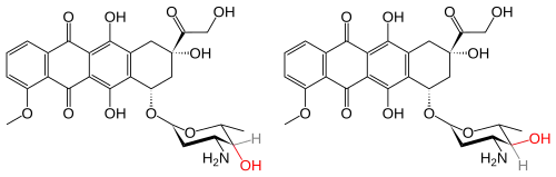 Doxorubicin und Epirubicin sind zwei eng verwandte Arzneistoffe und Epimere: