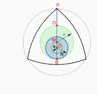 Der Ball'sche Kreis, ein Spezialfall der Ball'schen Kurve, ist ein Kreis um den Mittelpunkt des umlaufenden Kreises mit dem Radius[11]