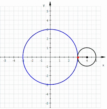 Dabei wird vorausgesetzt, dass der feste Kreis den Mittelpunkt hat. Die Startposition des erzeugenden Punktes ist . Als Parameter wird der Winkel verwendet, den die Verbindungsstrecke zwischen dem Ursprung und dem Mittelpunkt des bewegten Kreises mit der x-Achse einschließt.