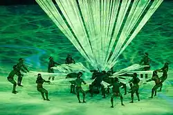 Die Eröffnungsfeiern der Olympischen Spiele umfassen eine Reihe traditioneller Elemente, die in der Olympischen Charta festgelegt sind.[1] Auch die Eröffnungsfeier der Olympischen Spiele 2016 begann mit dem Hissen der Flagge und dem Abspielen der Nationalhymne des Gastgeberlandes Brasilien. Es folgte das Kulturprogramm mit Hunderten von Sambatänzern, Auftritten von Model Gisele Bündchen und Musikern wie Caetano Veloso, Ludmila Ferber und Gilberto Gil sowie einem emotionalen künstlerischen Appell gegen Umweltzerstörung, Klimawandel und die Abholzung des tropischen Regenwaldes.[2]