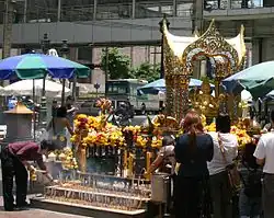 Dieser Schrein hat im Laufe der Jahre eine internationale Berühmtheit erlangt. Er ist dafür bekannt, dass man sich hier vom Erawan-Brahma Geld, Liebe, beruflichen Erfolg aber auch Gesundheit und Erleuchtung erbitten kann. Wird einem der Wunsch gewährt, besucht man den Schrein erneut, um sein Versprechen einzulösen. Für größere Wünsche steht eine Tanztruppe zur Verfügung, die zu Klängen eines traditionellen thailändischen Orchesters Tänze aufführt, um den Gott zu erfreuen. Diese Art der Verehrung ist so tief mit dem thailändischen Leben verwoben, dass man statt von Aberglaube schon fast von Brauchtum sprechen kann.