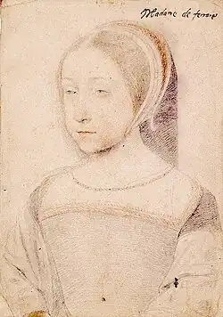 - Anna (1531–1607) ⚭ (I) 1548 François de Lorraine, duc de Guise (1519–1563); ⚭ (II) 1566 Jakob von Savoyen, Herzog von Nemours (1531–1585),