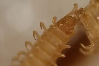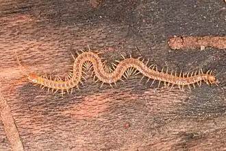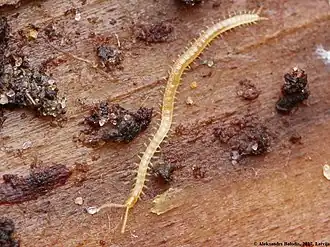- ↑ Lucio Bonato, Leandro Drago, Jérôme Murienne (2013) Phylogeny of Geophilomorpha (Chilopoda) inferred from new morphological and molecular evidence. Cladistics 30(5):485–507. doi:10.1111/cla.12060.