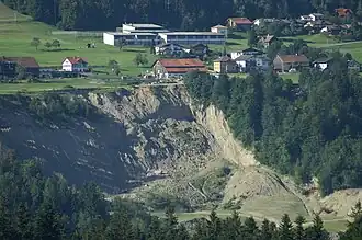 | Erdrutsch | 1994 | Plasselb, Kanton Freiburg, Schweiz | Etwa 30 Millionen Kubikmeter Material (Schlamm, Gesteinsbrocken, Holz) | Die Ferienhaussiedlung Falli-Hölli wurde komplett zerstört. Insgesamt wurden etwa 37 Gebäude zerstört.[3] |