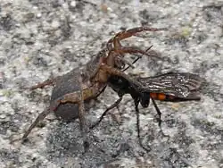 - ↑ Trochosa terricola im Spinnen-Forum-Wiki der Arachnologischen Gesellschaft, abgerufen am 23. Mai 2019