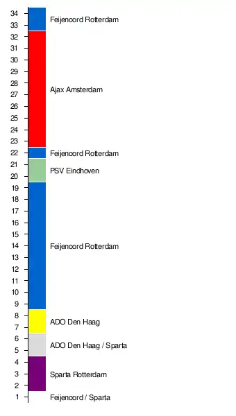 | 3. | ADO Den Haag | 2:0 | 1:0 | 1:1 | 1:1 | 2:1 | 3:0 | 3:1 | 4:0 | 2:1 | 1:0 | 4:0 | 4:0 | 3:0 | 0:0 | 0:0 | 3:0 | 6:0 | |