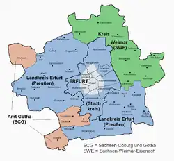 Seit der Ernestinischen Teilung im Jahr 1640 grenzte das Erfurter Gebiet an folgende Territorien: