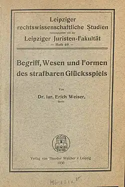 - Begriff, Wesen und Formen des strafbaren Glücksspiels. Leipzig : Weicher, 1930