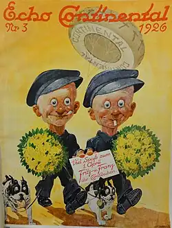 Ab Mitte 1921 war Remarque zunächst als freier Mitarbeiter für die in Hannover herausgegebene Werkszeitung des Reifenherstellers Continental AG tätig: Für das Blatt Echo Continental arbeitete er ab April 1922 als Festangestellter und war bereits im Juni 1923 verantwortlicher Chefredakteur. Neben gereimten Werbetexten verfasste er die Geschichten der von ihm erfundenen Comicfiguren Die Contibuben, die er mit dem Kürzel „E.M.R.“ versah und zu denen Hermann Schütz die Zeichnungen beisteuerte. Auch nach seinem Wechsel zum Scherl-Verlag Anfang 1925 schrieb Remarque die Serie bis zur Einstellung im Dezember 1926 fort.[14]