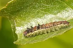 Die Raupen verpuppen sich in einem Blatt, das sie verspinnen, und überwintern dann als Puppe auf dem Boden.