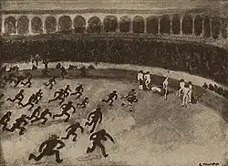 - Stierkampfarena (Stiergefecht). Farbige Zeichnung