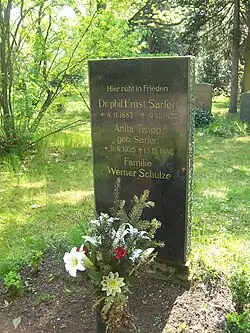 Ernst Sarfert hatte am 8. Oktober 1917 in Leipzig-Gohlis Emma Rohland geheiratet. Der Ehe entstammten die Töchter Edith, verehelichte Schulze, und Anita, verehelichte Trapp.