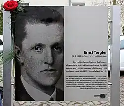 Ernst Torgler, Sohn eines städtischen Arbeiters, wurde kaufmännischer Angestellter. Er trat 1910 in die SPD ein. Nach seinem Kriegsdienst im Ersten Weltkrieg wechselte er zur USPD und wurde beim Zusammenschluss mit der KPD 1920 deren Mitglied.