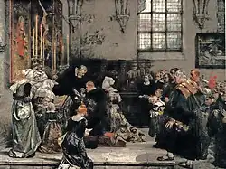 Ernst der Bekenner nimmt in der Schlosskapelle zu Celle zum ersten Male das Abendmahl in beiderlei Gestalt – also mit Hostie und Wein – ein. Historiengemälde von Hugo Vogel aus dem Jahr 1887.