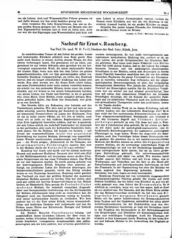 - Nachruf auf Ernst von Romberg in der Münchener Medizinischen Wochenschrift 81.1934, S. 80–82
