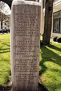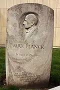 Es zeigt vorne eine Büste von M. Planck und eine Inschrift. Auf den Seitenflächen befinden sich eine Würdigung von Leben und Werk des Ehrenbürgers der Stadt Kiel und des Ehrensenators der Universität Kiel sowie ein Zitat aus einer späten Rede des Wissenschaftlers.