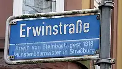 Mehrere Straßen in Süddeutschland sind nach Erwin von Steinbach benannt: Die Erwinstraße im Freiburger Stadtteil Wiehre. In Steinbach (Baden-Baden) und in Bühl gibt es jeweils eine Meister-Erwin-Straße. In München existiert der Erwin-von-Steinbach-Weg.