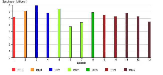 - ↑ Laura Friedrich: Primetime-Check Samstag, 27. Januar 2024. In: Quotenmeter.de. 28. Januar 2024, abgerufen am 29. Januar 2024.