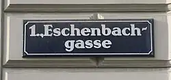 Die Eschenbachgasse befindet sich im 1. Wiener Gemeindebezirk, der Inneren Stadt. Sie wurde 1863 nach dem unter Napoleon hingerichteten Wiener Hausbesitzer Jakob Eschenbacher benannt.