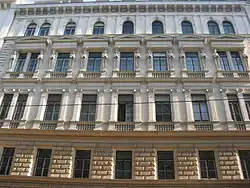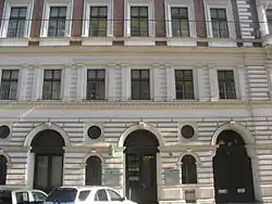 Das Gebäude wurde 1870 bis 1871 von Heinrich von Förster in Formen der Wiener Neorenaissance errichtet. Über der rustizierten Sockelzone mit Arkadenfenstern erhebt sich die Fassade, die durch plastische Hermenädikulä und ionische Pilaster geschmückt ist. Das Foyer ist durch Pilaster und Arkaden gegliedert. Das Stiegenhaus besitzt über toskanischen Pilastern ein Glassatteldach.
