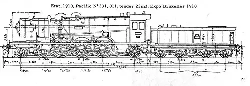 Die Nassdampflokomotiven verfügten über ein Vierzylinder-Verbundtriebwerk mit außenliegenden Hochdruckzylindern und innenliegenden Niederdruckzylindern. Sie basierten auf Elementen der Pacific-Vorserienlokomotiven der Chemins de fer de l’Ouest mit den Nummern 2901 und 2902 und den 2’C-Lokomotiven der Baureihe 3800 der État. Von den Vorserienlokomotiven wurde der Kessel und die Bisselachse übernommen, wobei die Heizrohrlänge von 6 m auf 6,3 m verlängert wurde und die Rauchkammer gekürzt wurde. Von der Baureihe 3800 wurde das Triebwerk übernommen.[3]