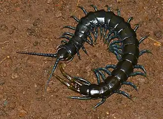 - ↑ a b c Christian Kronmüller: Hundertfüßer: Lebensweise, Haltung, Nachzucht (= Terrarien Bibliothek). NTV Natur und Tier-Verlag, 2013, ISBN 978-3-86659-219-3, S. 53.