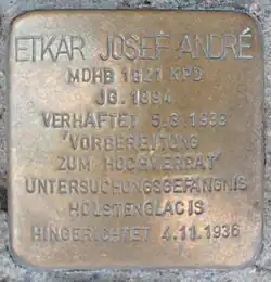 - Biografie und Porträt zu Etkar André bei stolpersteine-hamburg.de