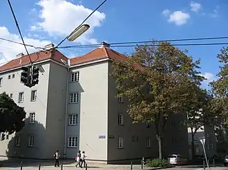 Die genannte Wohnhausanlage wurde nach dem Heiligen Josef benannt. Der Architekt Franz Wiesmann erbaute sie 1935/36 in einfachen schmucklosen Formen und bemühte sich, trotz der geringen zur Verfügung stehenden Mittel, ein Mindestmaß an Humanität bei der Gestaltung des Wohnraums zu verwirklichen. Die Anlage besteht aus 95 Wohnungen in zwei Wohnhöfen, die Ecken an der Troststraße sind als einziges Gestaltungselement zurückversetzt. Zwischen 1991 und 1993 erfolgte eine Sanierung der Wohnhausanlage.