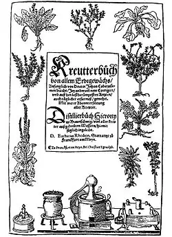 Das 1533 von Christian Egenolff verlegte Kräuterbuch Kreutterbuch von allem Erdtgewächs war eine Bearbeitung des Gart der Gesundheit (1485) von Johann Wonnecke von Kaub und des Kleinen Destillierbuchs von Hieronymus Brunschwig (1500). Es enthielt auch Abschnitte über Mineralien.[4]