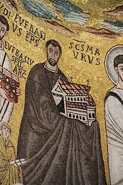 Über das Leben des hl. Euphrasius ist wenig bekannt. Er wurde zwischen 530 und 540 Bischof von Poreč. Er wurde eingesetzt, um nach der byzantinischen Eroberung Istriens die Kirchenpolitik Kaiser Justitians durchzusetzen.[1] Ab 543 ließ er die Basilika des Bistums unter Verwendung alter Bauteile neu errichten; sie ist heute nach ihm benannt als Euphrasius-Basilika.[2]
