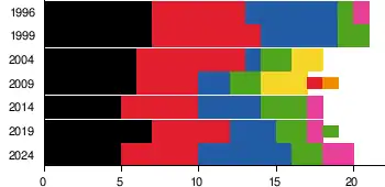 | 1996 | 1999 | 2004 | 2009 | 2014 | 2019 | 2024 | |