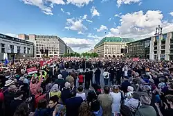 Nach dem Vorfall in Dresden riefen die Bündnisse „Zusammen gegen Rechts“ und „Wir sind die Brandmauer Dresden“ zu Demonstrationen in Dresden und Berlin am 5. Mai 2024 auf.[39] In Dresden versammelten sich daraufhin 3000 Teilnehmer, die nach dem Angriff Solidarität bekundeten; die Demonstration stand unter dem Motto „Gewalt hat keinen Platz in unserer Demokratie“.[40]