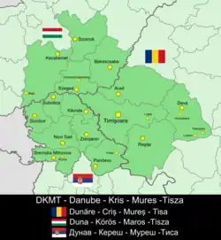 - ↑ Universität Tübingen: Die Euroregion Donau-Kreisch-Marosch-Theiß (DKMT), als Modell grenzüberschreitender Entwicklung in Südosteuropa. In: uni-tuebingen.de. Juni 2005, ehemals im (nicht mehr online verfügbar); abgerufen am 3. April 2011. (Seite nicht mehr abrufbar. Suche in Webarchiven)