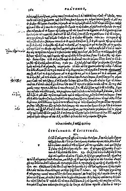 - ↑ Oxford, Bodleian Library, Clarke 39 (= „Codex B“ der Platon-Textüberlieferung).
