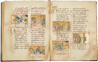 - ↑ Sazogadoeba.ge, Warum wurde Evangeliar beschädigt? (georgisch)