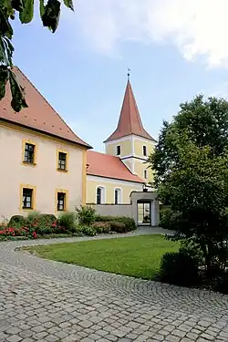Das Langhaus geht im Kern auf die romanische Saalkirche zurück, die 1699 durch Brand beschädigt wurde. Der Chorturm im Osten des mit einem Satteldach bedeckten Langhauses erhielt 1780 seine heutige Form mit dem spitzen Helm.