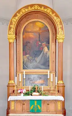 Die beiden heutigen Hochaltargemälde, Krippe und Kreuzabnahme, sind 1938 von Rudolf Schäfer angefertigt worden. Aus dem Jahr 1932 stammt der aus Sandstein und Granit gemeißelte Taufstein, der das Taufbecken von 1845 ersetzt hat.