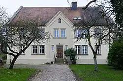 Der zweigeschossige Satteldachbau stammt im Kern aus dem 12. Jahrhundert. Im 18. und 19. Jahrhundert erfolgten Umbauten. Die neugotische Eingangsfassade mit Doppelfenstern und Giebelbekrönung entstand in der Mitte des 19. Jahrhunderts.