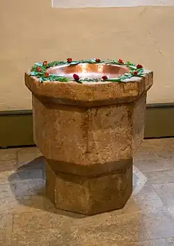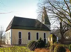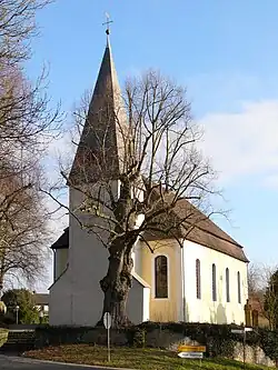 Die heutige Kirche ist ein rechteckiger chorloser Saalbau von 1762. Der Westturm ist noch aus dem Jahre 1100/20 erhalten. Bei Ausgrabungen konnten insgesamt fünf vorangegangene Bauten nachgewiesen werden. Die älteste noch erhaltene Anlage ist eine kleine Saalbrücke aus dem 9. oder 10. Jahrhundert. Im Inneren der Kirche ist ein Taufstein aus dem 12. Jahrhundert erhalten. 1968 wurde eine Steinmann-Orgel in die Kirche eingebracht.