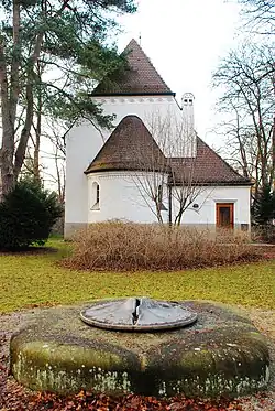 Unmittelbar östlich der Kapelle befindet sich das Mahnmal des Klinikums zur Erinnerung an die Patienten, die ab 1940 im Rahmen des nationalsozialistischen Euthanasieprogramms „Aktion T-4“ ermordet wurden. Es wurde vom Bildhauer Josef Golwitzer geschaffen und am 18. Januar 1990 eingeweiht, dem 50. Jahrestag der ersten Abtransporte von Patienten.