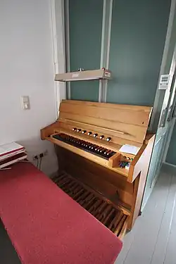 Eine 1893 vorhandene Orgel wurde durch ein Harmonium ersetzt. Orgelbauer und Baujahr sind unklar. 1928 schaffte die Gemeinde ein neues Harmonium an. Ein Orgelpositiv wurde 1949 von Orgelbauer Kaes aus Bonn für Herrn Sagel in Burg gebaut, die das Instrument 1956 an die Kirchengemeinde verkaufte.[7] 1965 wurde die Orgel erweitert und 1970 renoviert. Das Instrument verfügte über fünf Register auf einem Manual und Pedal.
